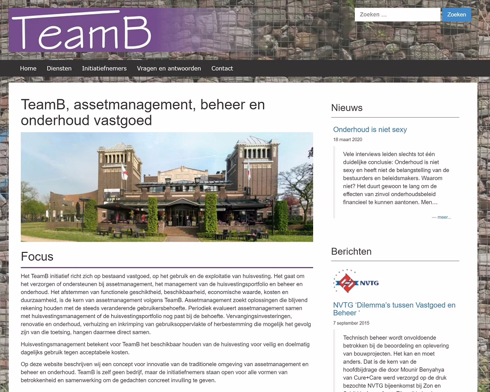 Teamb richtte zich eerst op bestaand vastgoed, op het gebruik en de exploitatie van huisvesting. De kern van assetmanagement is volgens Teamb het afstemmen van functionele geschikheid, beschikbaarheid, economische waarde, kosten en duurzaamheid. In 2015 hebben wij een website voor Teamb gebouwd.